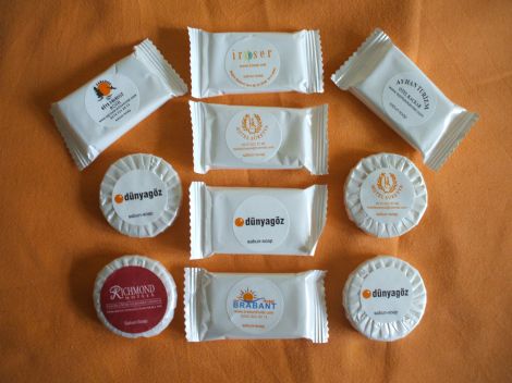Farklı şekil ve aromalarda otel buklet ürünleri arasında yer alan sabunlar otellerimizin buklet ürünleri arasında yer almaktadır. İsteğinize göre logonuzun baskılı olduğu sabunların üretimi mümkündür. Temizlik için oldukça önemli bir yere sahip olan sabunlar otellerde kullanılacağı zaman mini otel sabunu olarak yer almaktadır. Otel sabun imalatçıları normal sabunlara nazaran biraz daha küçük boyutlarda sabunlar üreterek paketlerler ve buklet sabunlarını satışa sunarlar. Sabun fiyatları ürün türüne göre değişmektedir. İhtiyacınıza yönelik el ayak sabunu siparişi için bize ulaşın. 0850 302 15 80